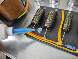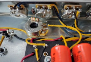 Após tudo funcionando é hora de instalar a guitarra com fitas que garantem que o instrumento não vai se mover e também são feitas de materiais que não riscam nem danificam a madeira. Após todo o processo a guitarra sai sem nenhum sinal.