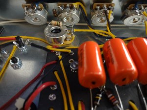 Normalmente para se trocar o raio da escala é necessário tirar os trastes, desbastar a escala para o novo raio e então instalar novos trastes curvados com o raio desejado.