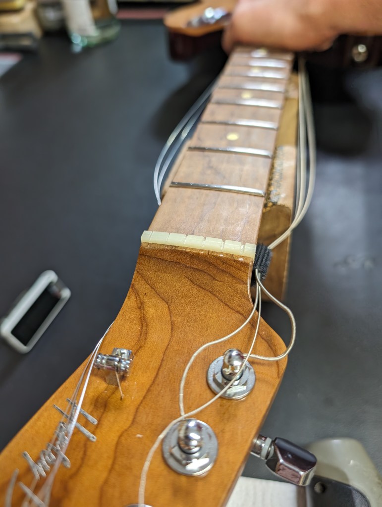 Após desbastar e fazer os slots do novo nut, o resultado é esse: