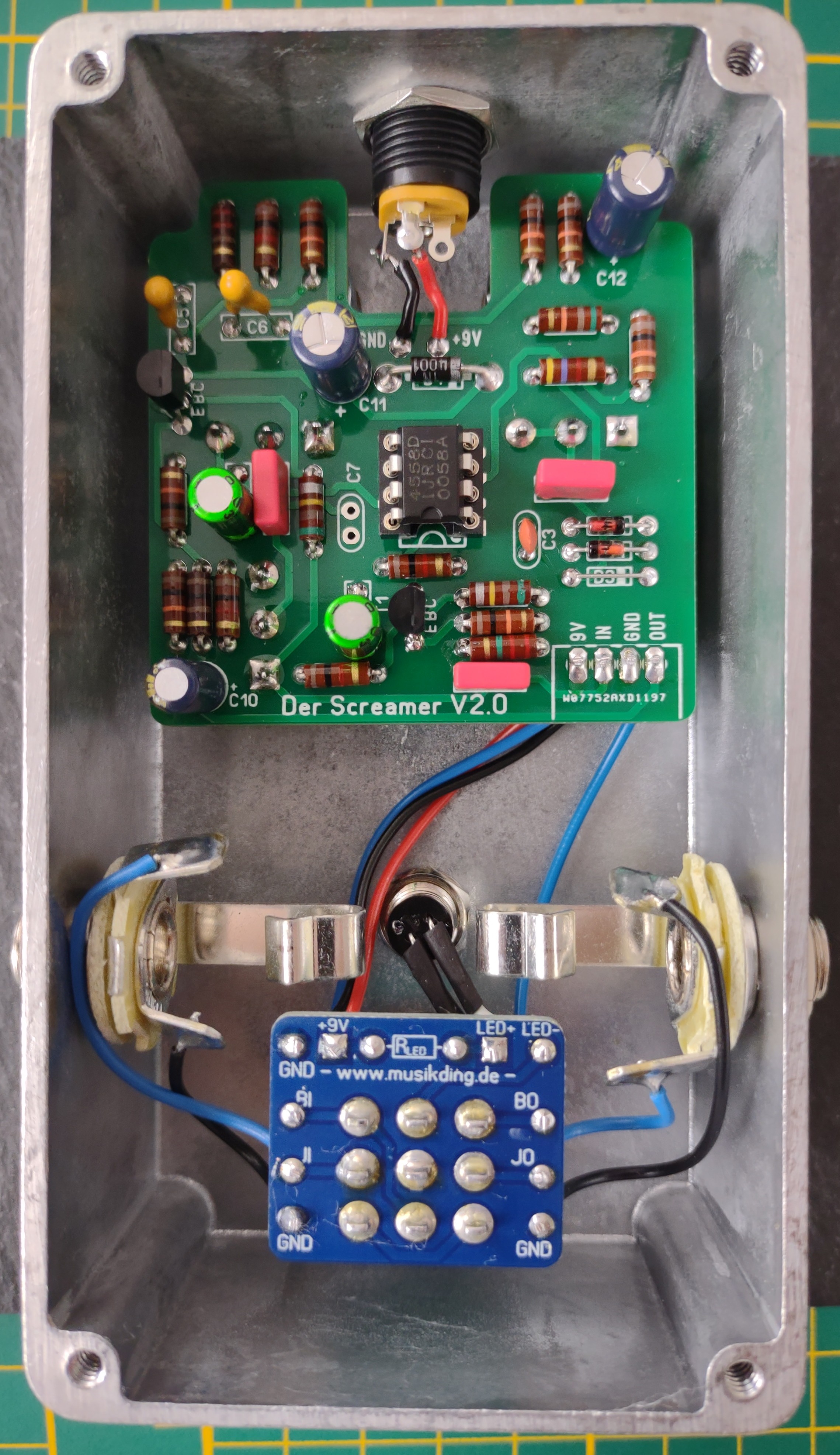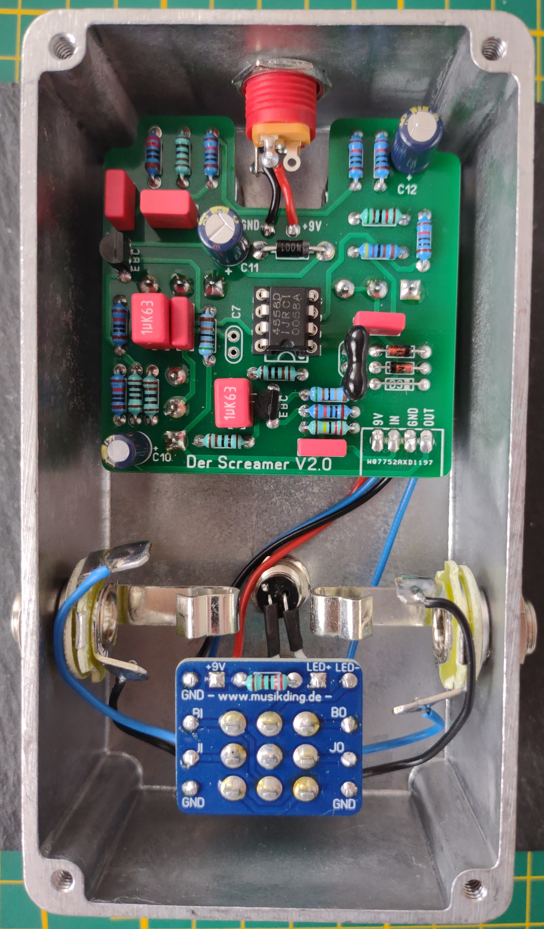 Após tudo funcionando é hora de instalar a guitarra com fitas que garantem que o instrumento não vai se mover e também são feitas de materiais que não riscam nem danificam a madeira. Após todo o processo a guitarra sai sem nenhum sinal.