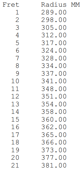 Mais legal ainda é a possibilidade da máquina calcular e executar exatamente quanto cada traste precisa ter de raio para ter uma relação perfeita.
