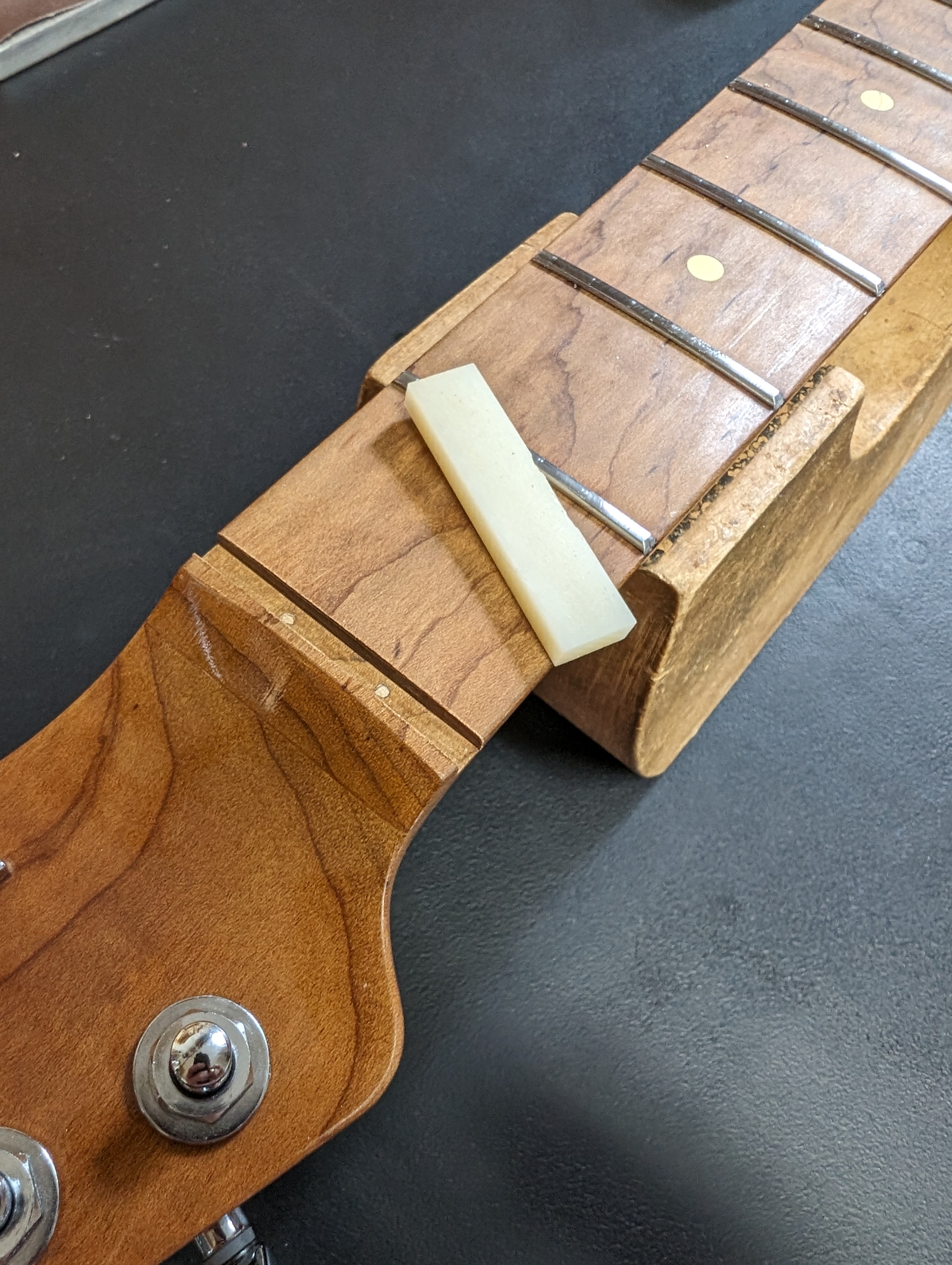 Após desbastar e fazer os slots do novo nut, o resultado é esse: