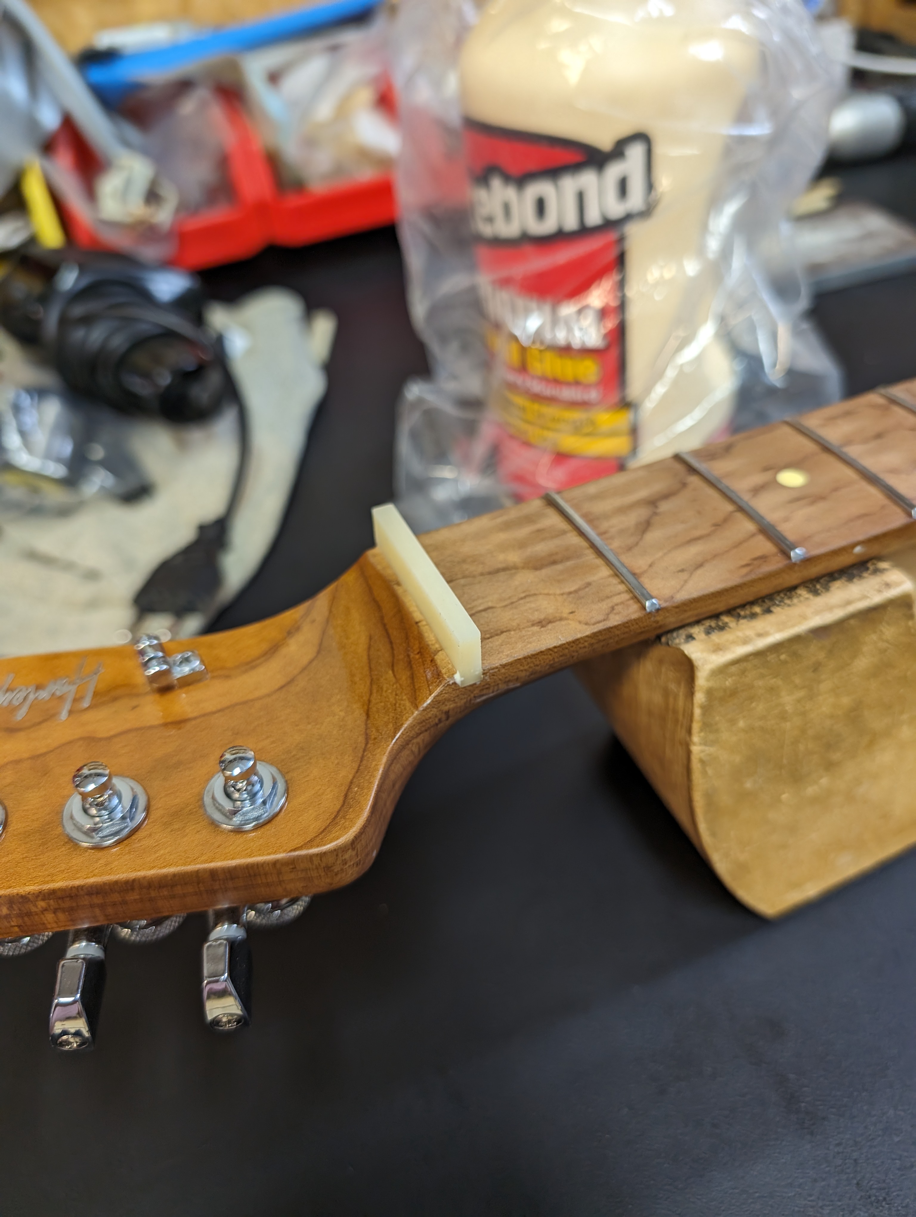 Tudo que tinha para fazer no braço foi feito e agora era a hora da próxima etapa, o nut.