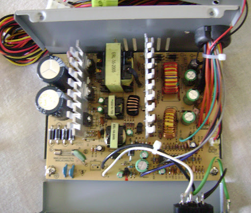 12v, 3,3v e 5v. Todas elas com bastante corrente. Também vem com -12v que não passa de 500mA mas que serve perfeitamente para testar circuitos de pedais com ampops com alimentação negativa. Existem esquemas na internet para modificar o circuito e assim ter tensões mais elevadas. Não recomendo tentar pois as modificações não são muito seguras e a fonte pode em uma falha soltar mais de 30v na saída e aí você queima tudo que estiver ligado nela. As fontes mais antigas necessitam de uma carga resistiva para permanecerem ligadas e os primeiros mods indicavam o uso de um resistor bem grande para isso. Nas fontes novas não é mais necessário e só a ligação correta dos fios faz ela trabalhar direitinho. Vamos ao mod: