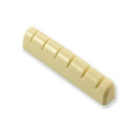 Plástico: Muito utilizado em violões com corda de nylon com bom desempenho. Nas guitarras é encontrado em instrumentos de baixo custo e não duram muito tempo. Particularmente não sinto grande diferença no som com diferentes tipos de nut, por isso não vou levantar muito essa questão pois isso é bem pessoal. Devo admitir que não levo muita fé nos nuts de plástico e não discordo quando dizem que os de plástico dão uma sonoridade abafada. Lembrando que só com a corda solta podemos sentir estas nuances entre cada tipo.