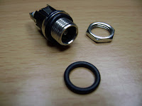 Como a entrada é em AC e o pedal funciona em DC, isolaram o encaixe com duas borrachinhas. Primeiro que isso é um perigo… As borrachas com o tempo secam e caem, sem contar que o conector não fica com um bom aperto no painel e toda hora fica frouxo. Se a fase do AC tocar na caixa pode queimar o transformador, o pedal e tudo fritar na hora. O furo da caixa também é grande demais e o conector fica sambando nele. No mesmo dia em que comprei já tirei e coloquei um de plástico que resolveu de vez o problema: