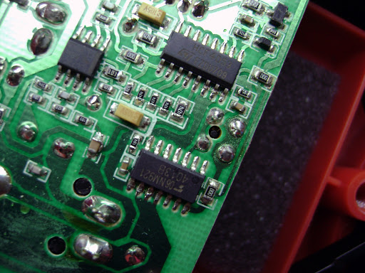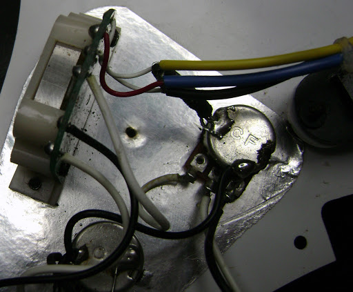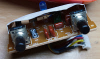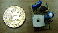 Placa removida, visão geral dos potenciômetros, led e mais alguns componentes: