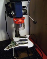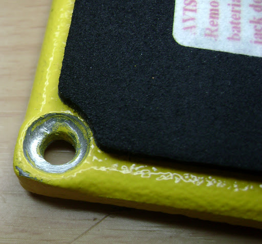 Na foto o lugar do furo foi marcado com um toque da ponta do ferro. Só o suficiente para escurecer o alumínio. Feita a marcação, é hora de jogar na furadeira e fazer o estrago:
