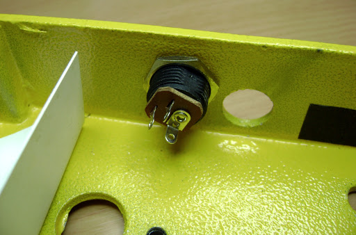 Alarguei o furo da entrada DC e coloquei uma nova de painel que tem uma qualidade ótima: