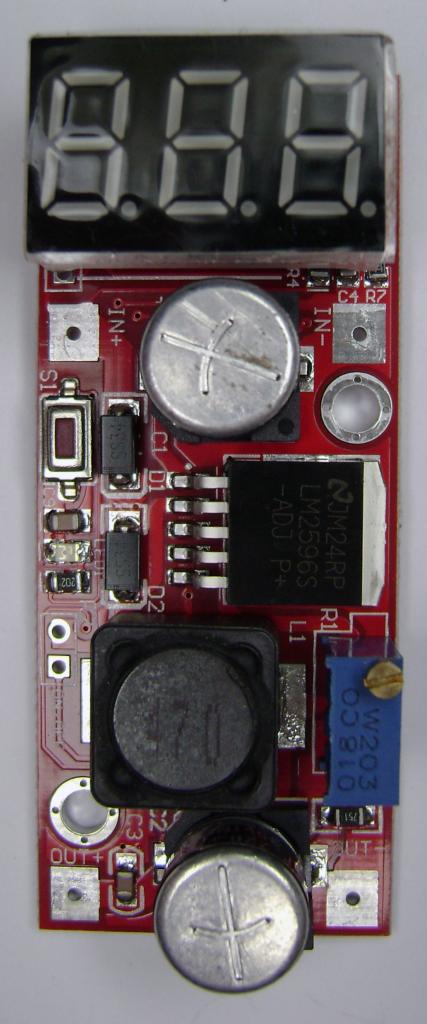 Comprei um para fazer o teste e achei uma maravilha. Realmente se comporta muito bem com fontes chaveadas e segue aquilo lá que eu falei da família LMXXXX. Este modelo é mais completo e conta com um voltímetro que mostra a tensão de entrada e saída. Existe outro modelo igual e mais barato só que sem o visor. Nesse não precisa nem de um multímetro para ajustar os 9v. É só girar o trimpot e olhar na telinha que a coisa fica porreta. Além disso, o legal é utilizar com qualquer fonte chaveada que são pequenas e funcionam em qualquer tomada. Tem um custo praticamente igual ao do outro circuito que mostrei acima.
