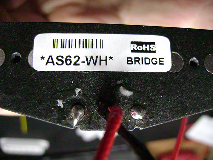 Na parte traseira vem uma etiqueta com o modelo e posição do captador na guitarra. Todos os produtos cumprem as normas RoHS. Os fios encontram o fio de cobre em uma chapinha de latão cravada no plástico e ficam envolvidos em uma gota de solda, como nos captadores antigos.