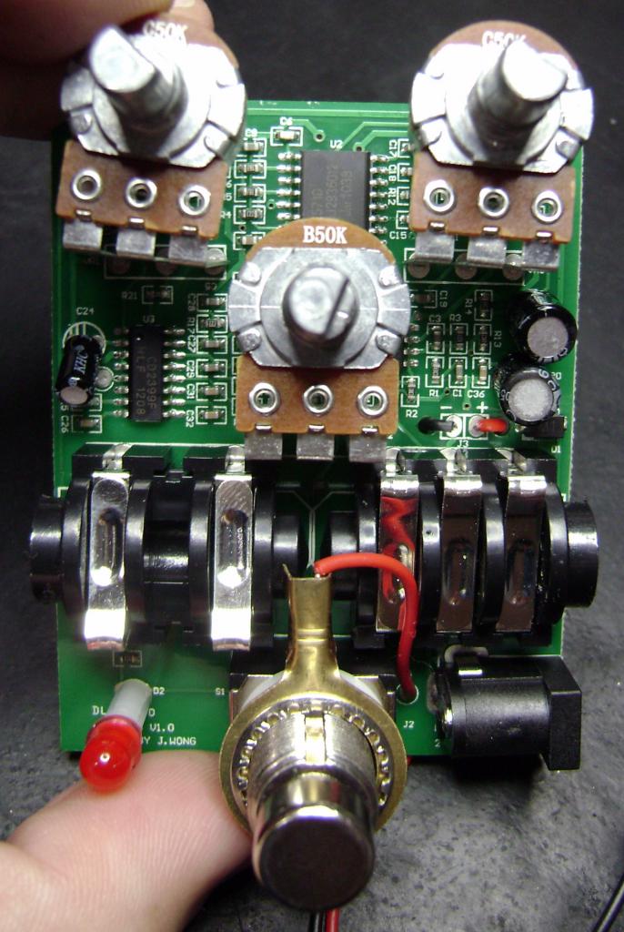 Muito bem acabado, sem fios, placa em fibra com todos os furos metalizados, potenciômetros de alto padrão, assim como jacks embutidos e porcas cromadas arredondadas.