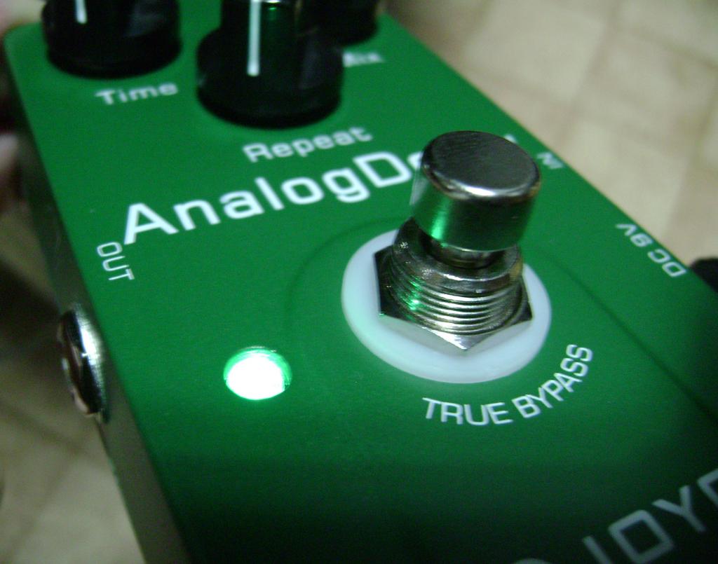 Quem olha o pedal pela primeira vez lembra muito de um Tube Screamer. Realmente cor de Delay não tem. Quem me conhece sabe que não gosto de leds vermelhos simples nos pedais. Tudo bem que é uma regra universal a luz vermelha no modo “on”, mas eu não gosto e ponto final. Podia ao menos ser um led de alto brilho como em outros produtos da marca, mas nem isso. Mal se consegue ver o aparelho ligado. Nada que uma substituição por um lindo led verde brilhante não resolva:
