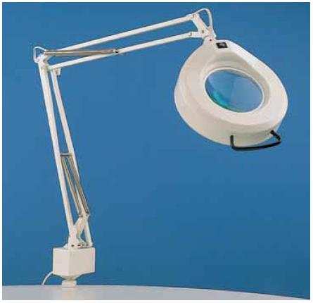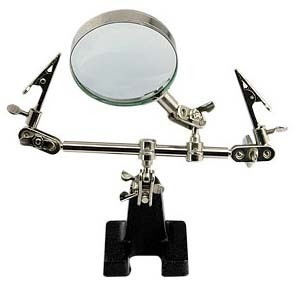 A luz é tudo ao trabalhar com componentes tão pequenos. Não precisa logo comprar uma com lupa como a da foto, mas utilize uma luz forte que ilumine bem toda a mesa.