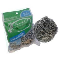 Palha de aço grossa. Este tipo de palha de aço é inox e dura muito. Em casas de eletrônica vendem uma dourada “própria” que é muito mais cara e enferruja. Para quem não sabe, é a melhor coisa para limpar a ponta quente do ferro. Remove totalmente a solda, fica limpinha e brilhando, não estraga nada. As esponjas vegetais que acompanham os ferros precisam estar molhadas para limpar o ferro. A esponja molhada em contato com o ferro quente estraga a ponta. Oxida. Ela fica preta até não soldar mais. E também não duram nada. Vai de palha de aço. Um pacote igual ao da foto vem com umas 4. Coloque uma em um pequeno pote de vidro e as que sobram dê aquele brilho nas panelas em casa.