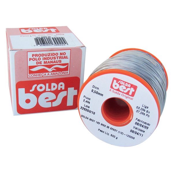 Não compre fio de estanho ruim daqueles vendidos em mercados e lojas de materiais elétricos. Compre fio próprio para soldar componentes. Encontrei uma ótima relação custo/benefício com a solda nacional 183 MSX. Eu uso fio 0,5mm e 0,8mm. Mais grosso que isso não fica legal para eletrônica, vem estanho demais na hora de soldar.