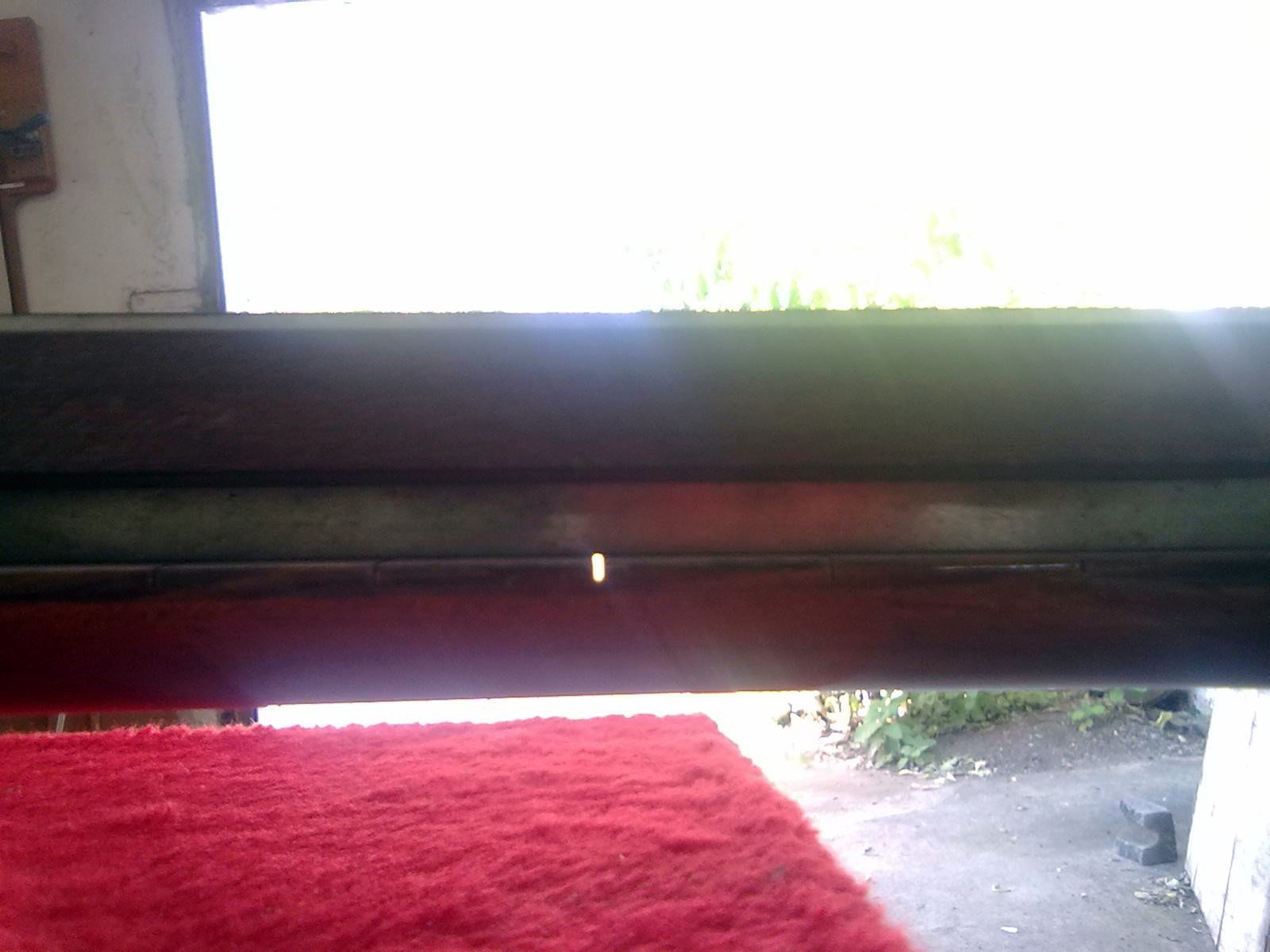 Foto 01: braço com a régua e os buracos, percebe-se pela luz que atravessa entre a escala e a régua.
