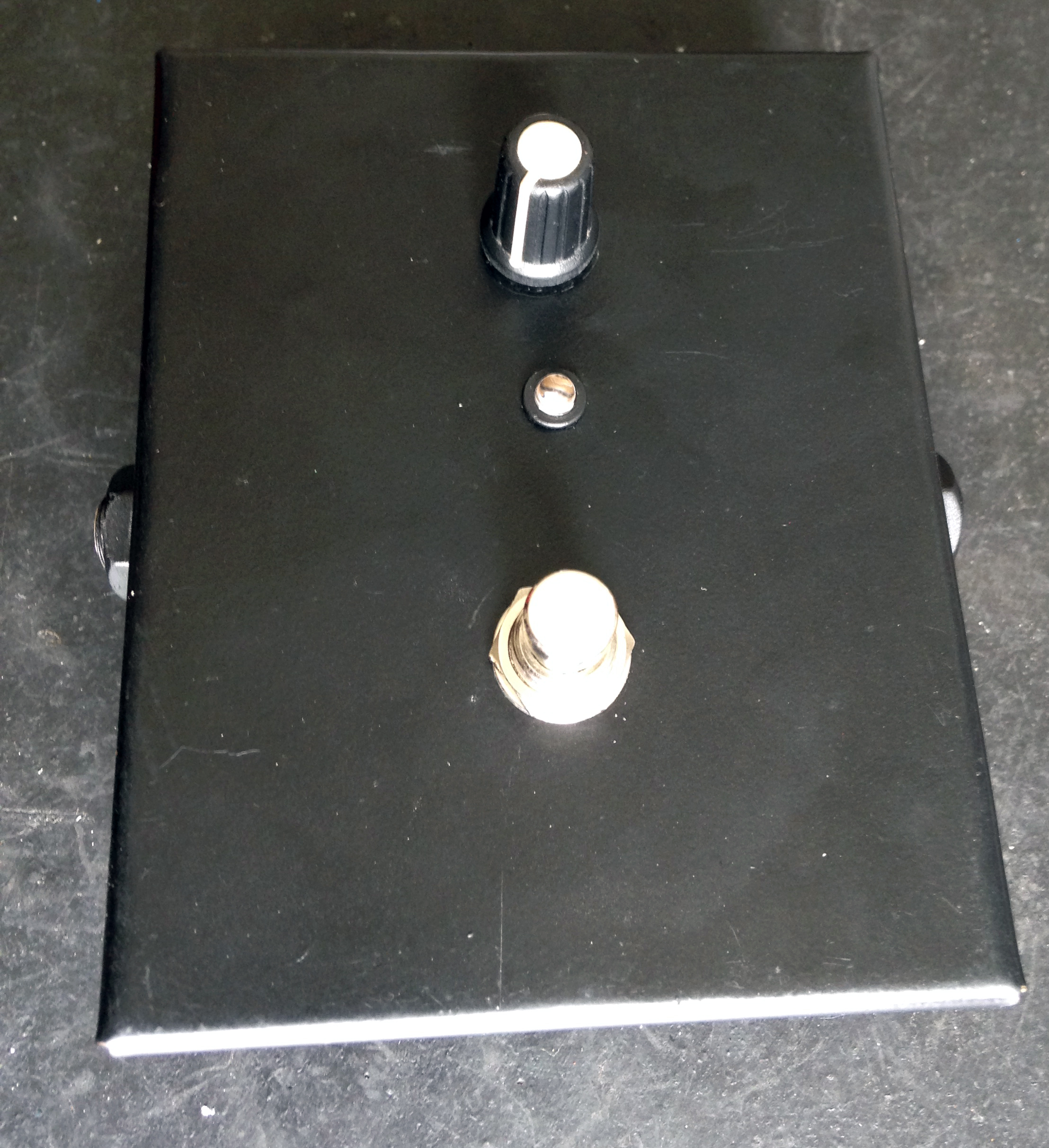 Como é um pedal para ser utilizado como o primeiro de todos para justamente evitar perdas de sinal, resolvi que não teria bypass, e sim uma comutação entre a saída do buffer e do boost. Então quando o pedal está “desligado”, na verdade está o buffer atuando no sinal:
