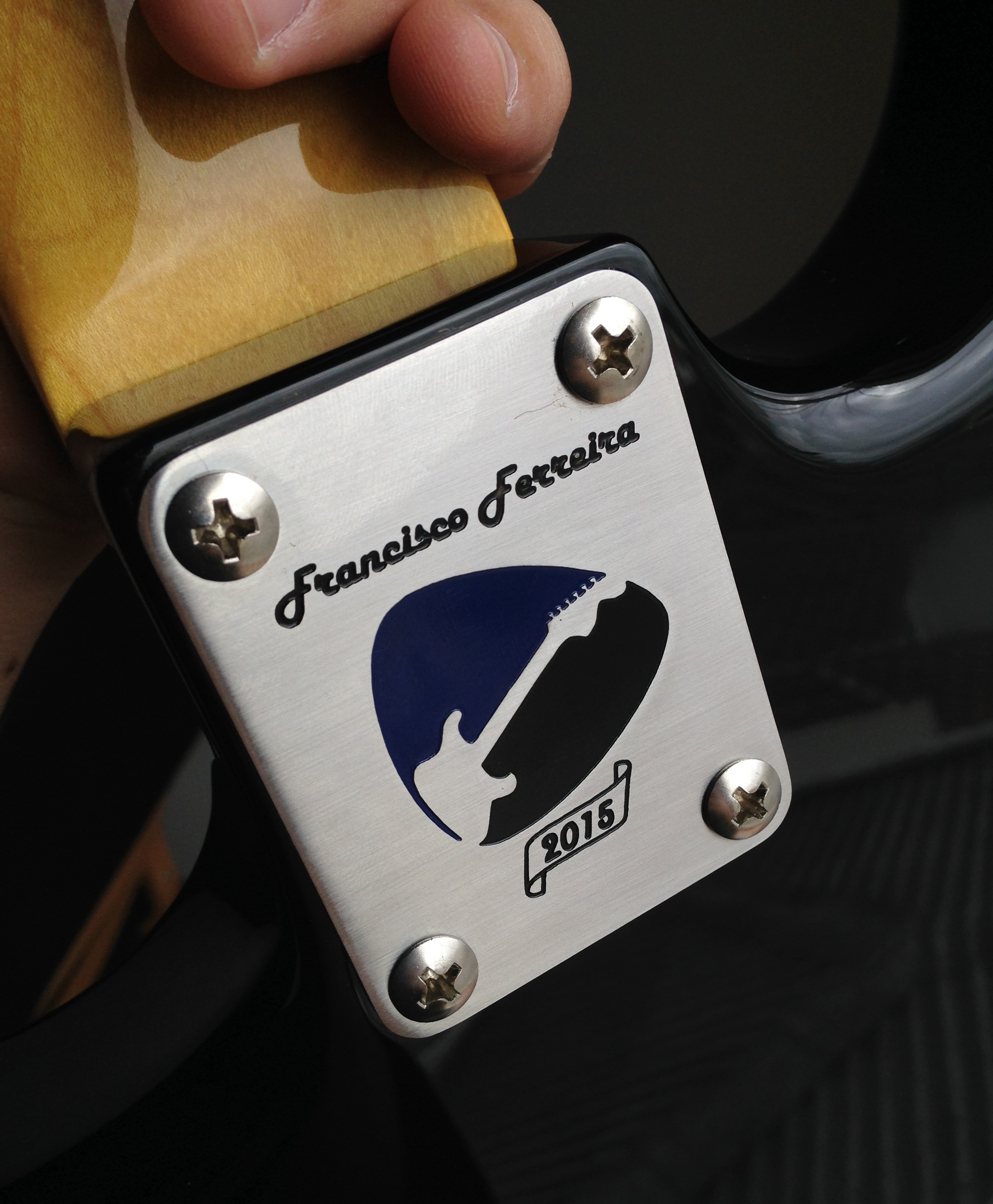 Christian Bove – Produziu o Neck Plate com o meu nome, a arte do blog e ano de construção da guitarra.