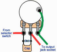 É uma solução muito comum para as Telecasters, mas igualmente útil em stratos e outras guitarras com Single-Coils. Captadores single são muito brilhantes e quando há algum tipo de corte de agudos (no caso do potenciômetro de volume), o instrumento fica sem brilho e parece que o som morre. Existem várias discussões na internet sobre o “usar ou não” o Treble Bleed. Muitos dizem, com alguma razão, que esses componentes podem alterar a impedância de saída e modificar a sonoridade da captação. Considero verdade, em parte.