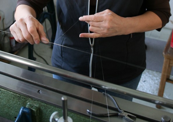 As máquinas contam a história da marca e da própria música, e são as mesmas que fazem as cordas da Pyramid há décadas.